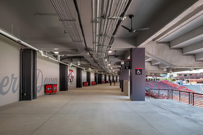 Thanks to the coordinated efforts of Turner Construction Company, HOK, Walter P. Moore, Argos Ready Mix, and Precision Concrete Construction, Sanford Stadium is now better equipped to welcome more than 90,000 fans on fall Saturdays. Wider concourses, enhanced restrooms, improved accessibility, expanded suites, and new donor spaces all contribute to a more enjoyable and modern game-day experience.